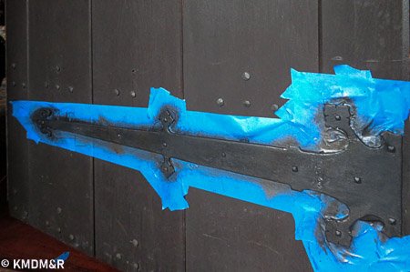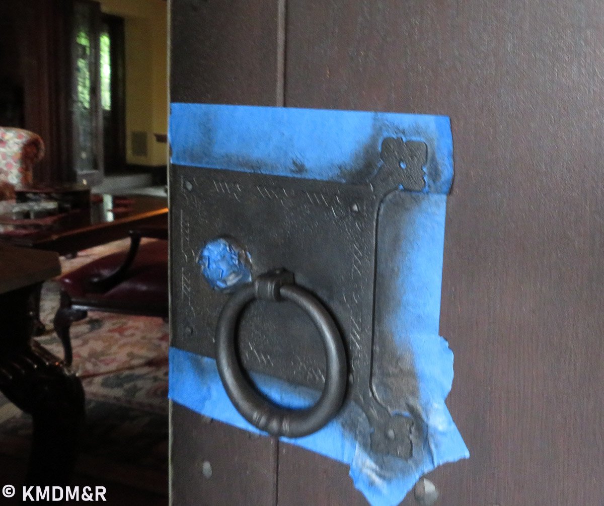 The work in this front door consisted of restoring the corroded Iron, carefully painting with a matte finish acknowledging the depth of color and texture of the antique Iron as per the client’s preference.