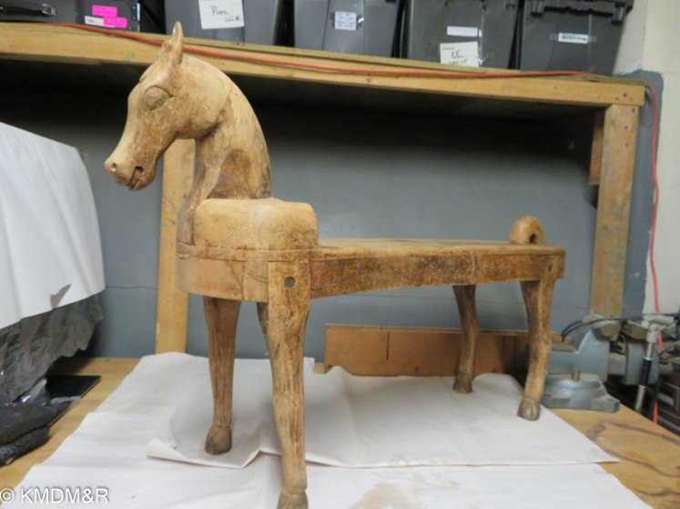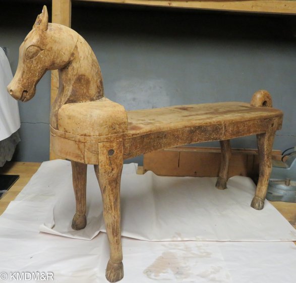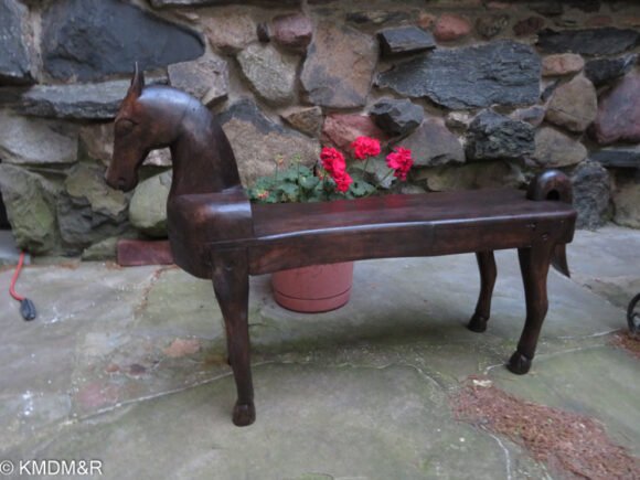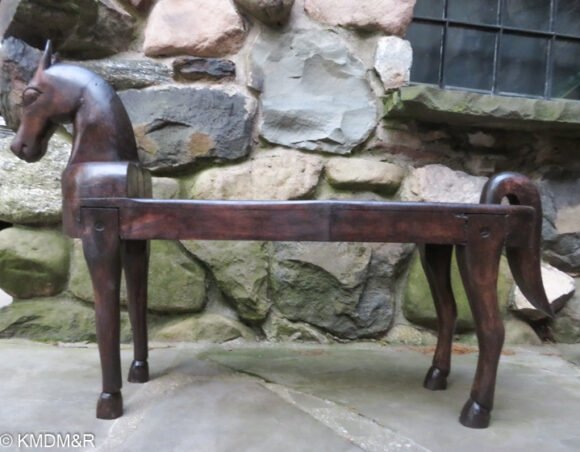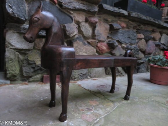 Restoring this antique horse bench sculpture involved different steps. Starting with deep cleaning dust accumulated over the years as it functions in the entryway. There were different tonalities of color while weathering away, the challenge was to accomplish an even tone with different hand strokes techniques. Dark stain as per client’s preference.
