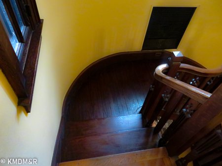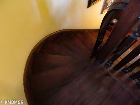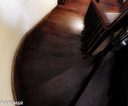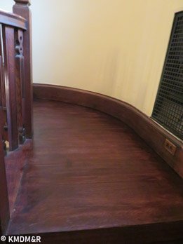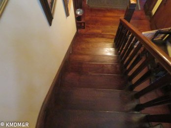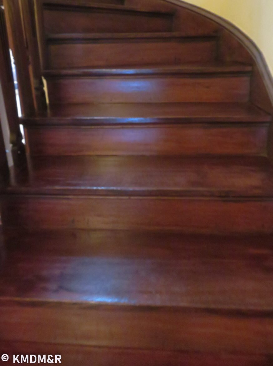 Mahogany Wood, The restoring process required that every stroke be done with a steady hand for uniform coverage including edges and corners. the stain removal and the application of the new stain that would glide thoroughly without any dark spots.Color consistency with railings by custom mixing. The effect is accomplished after several coats and appropriate sealer for protection in a high transit area such as a staircase.