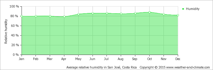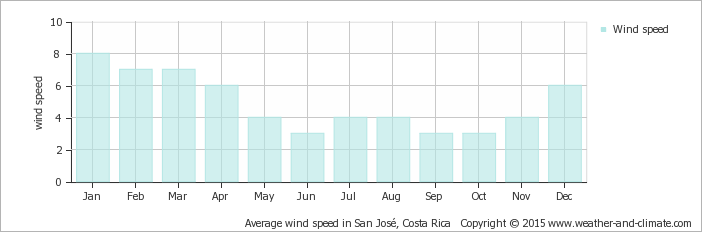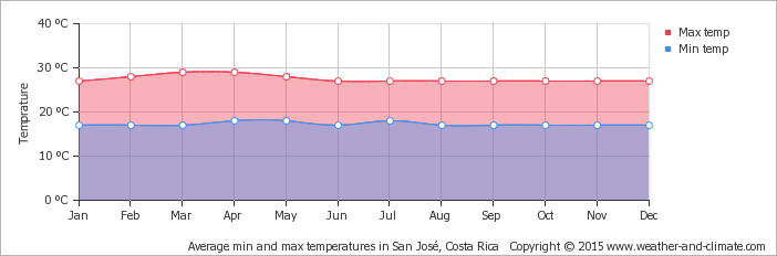 The sun shines throughout the year. It has more than 12 hours of sunlight, as the sun rises at 5:45 a.m. and sets at approximately 5:45 p.m. In Costa Rica the average annual temperature is between 21 and 27 degrees Celsius and the coldest months of the year are November, December and January. The months of March through May are the hottest months of the year. San Jose, located in the Central Valley, has an average temperature of 22 degrees Celsius, with a mild breeze coming from the coast. (Tierra Verde 2016)