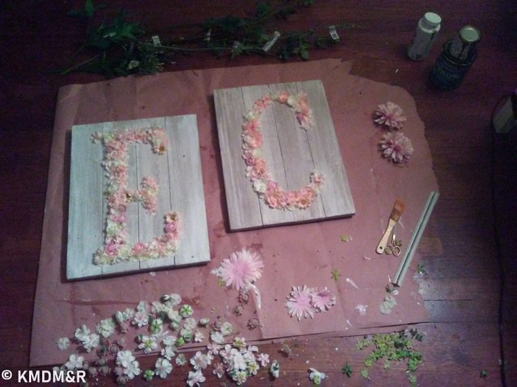 The client contacted me to build two monograms from wood found at her dad’s shop. Reclaimed wood, with the initials of her newborn baby girls.
