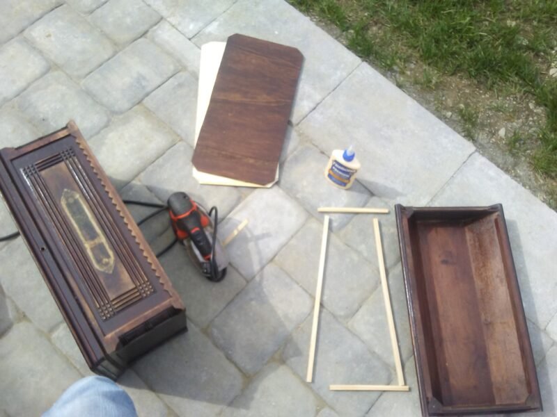 Finished it off by lightly sanding the whole piece and staining to even out the antique wood color.